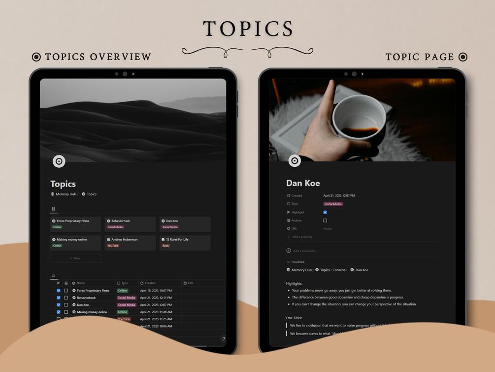 The Notion Memory Hub is the perfect tool for organizing your digital topics and notes.